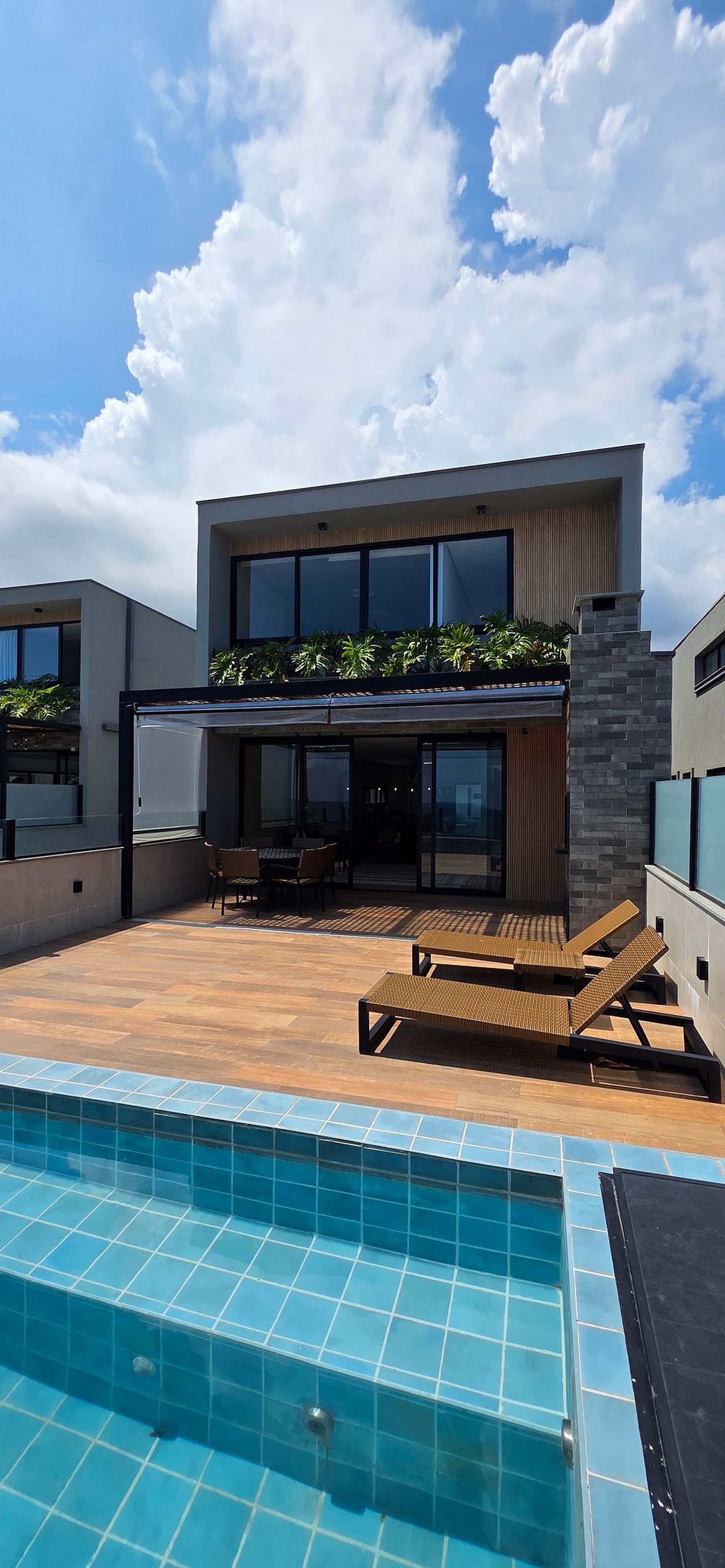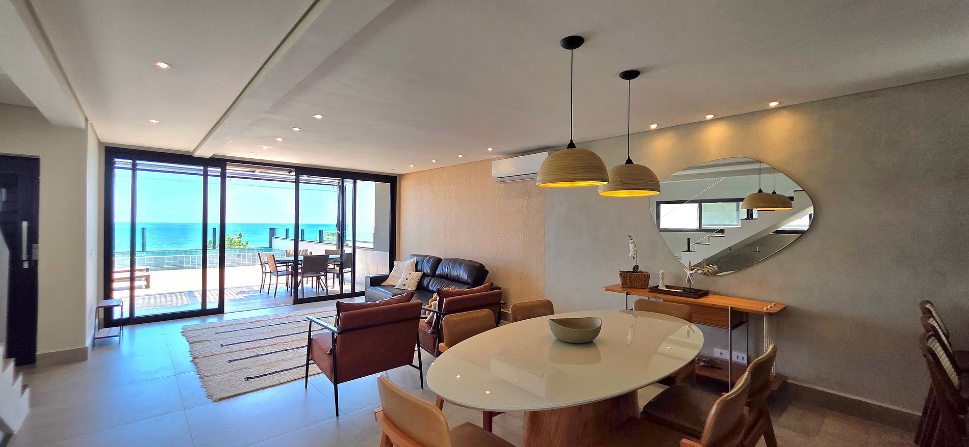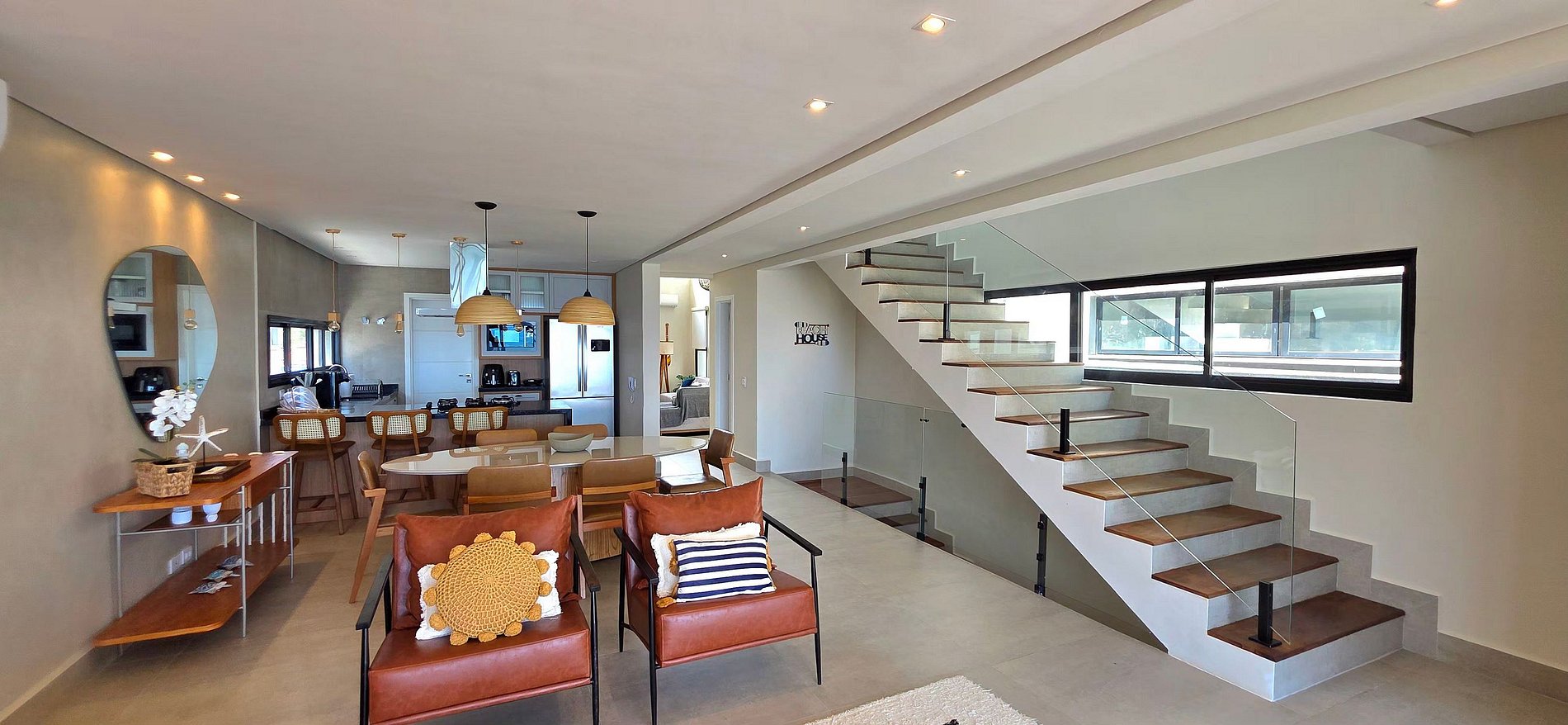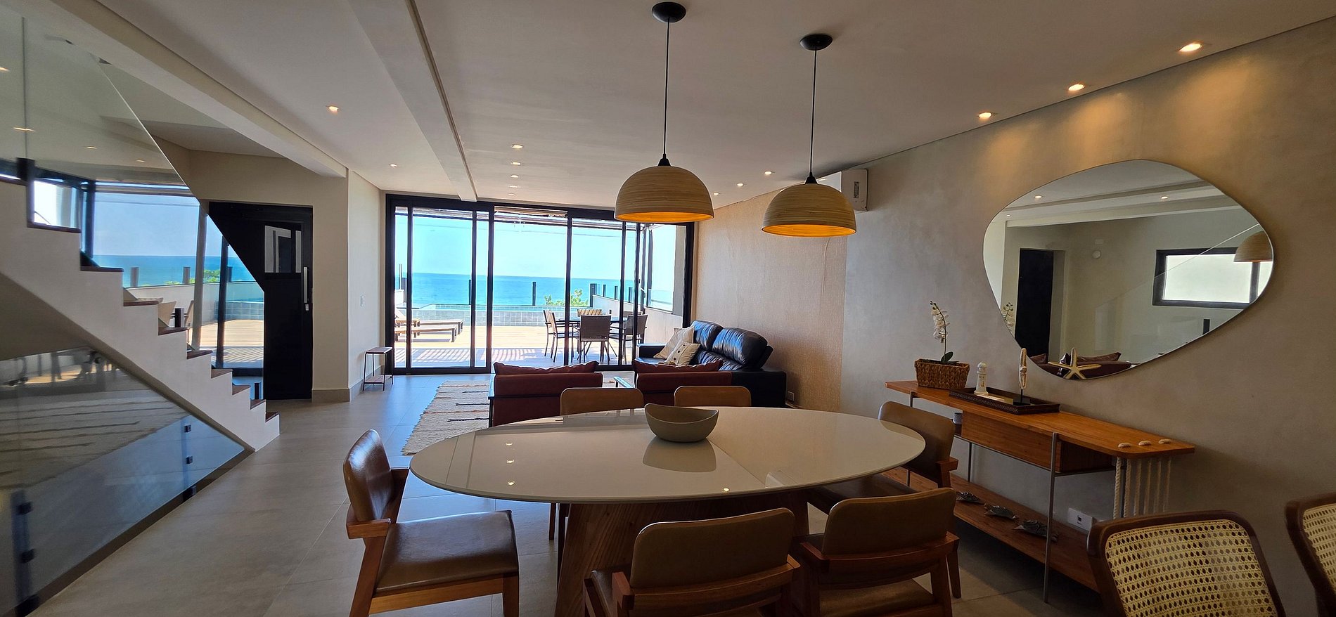 Esta elegante casa duplex foi pensada para oferecer conforto, privacidade e uma experiência completa de lazer. Ao acessar a entrada principal da casa, você é imediatamente recebido por um ambiente amplo, integrado e iluminado, onde a área social se abre por completo e revela uma vista privativa e deslumbrante para o mar. Todos os espaços foram projetados para valorizar a paisagem, criando uma atmosfera acolhedora, sofisticada e perfeita para relaxar e aproveitar cada momento da estadia. Neste mesmo nível, a casa dispõe ainda de uma ante-sala de TV e três amplas suítes, garantindo comodidade e privacidade. No piso superior, está a charmosa suíte master, com vista privativa para o mar, criando o cenário perfeito para momentos de descanso e contemplação. A casa acolhe confortavelmente até 10 pessoas da sua família!!