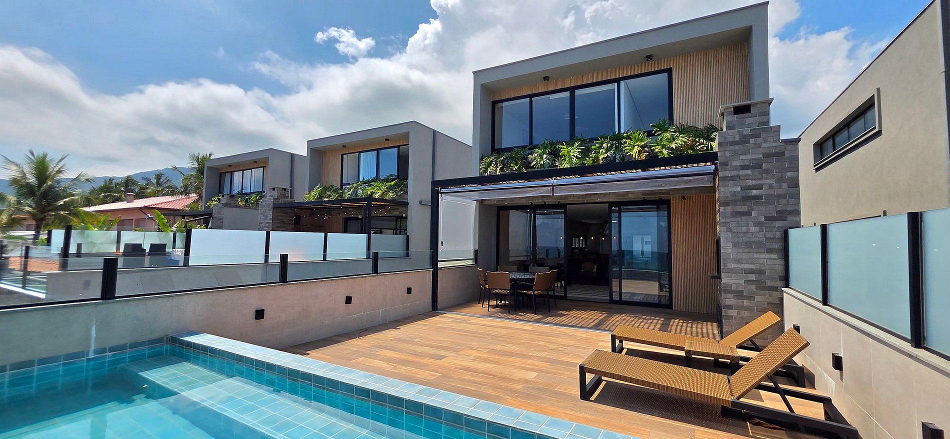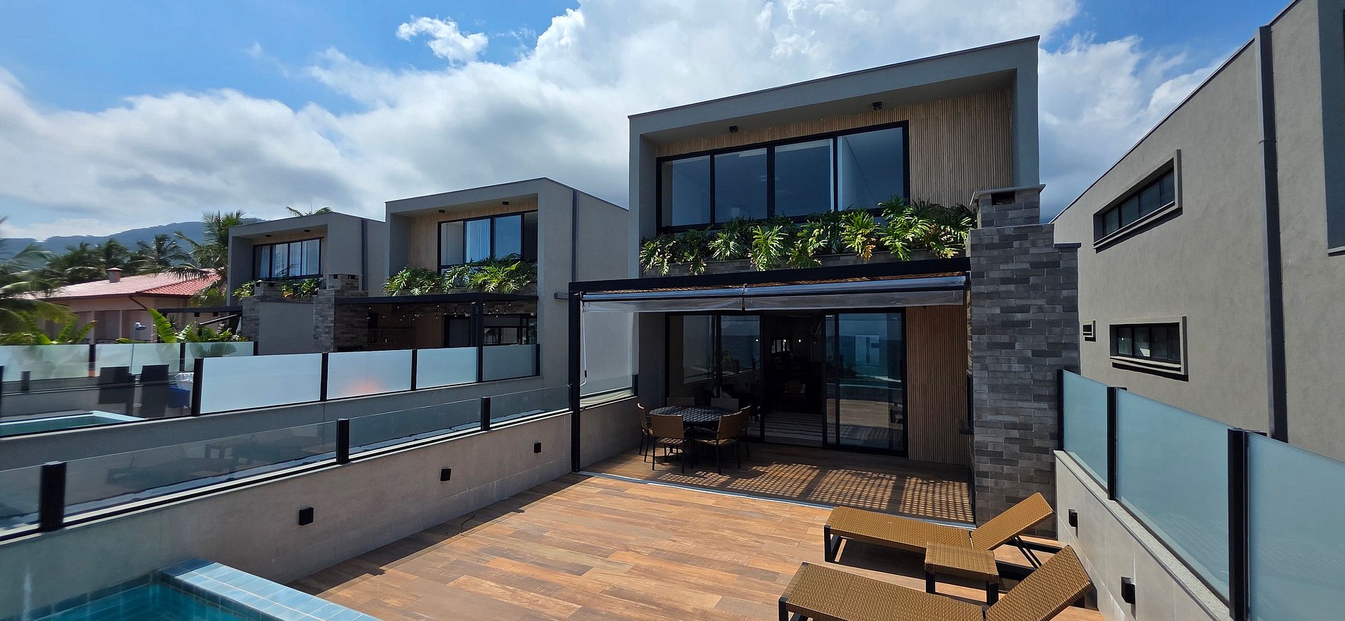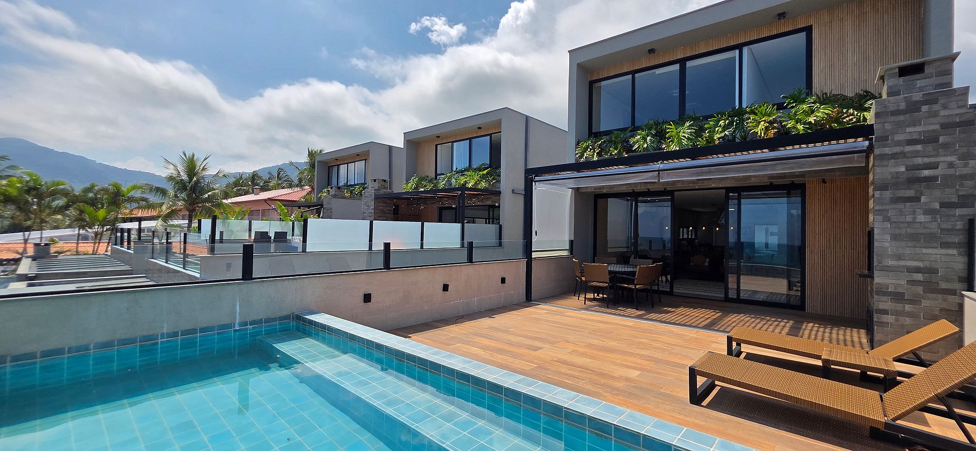 Casa duplex exclusiva em Maresias, situada em condomínio com acesso direto à praia e vista particular para o mar. Ambientes integrados, decoração elegante, piscina de borda infinita voltada para o oceano, churrasqueira privativa e máxima privacidade. Perfeita para quem deseja conforto e sofisticação à beira-mar, aproveitando o melhor do litoral com tranquilidade e charme.