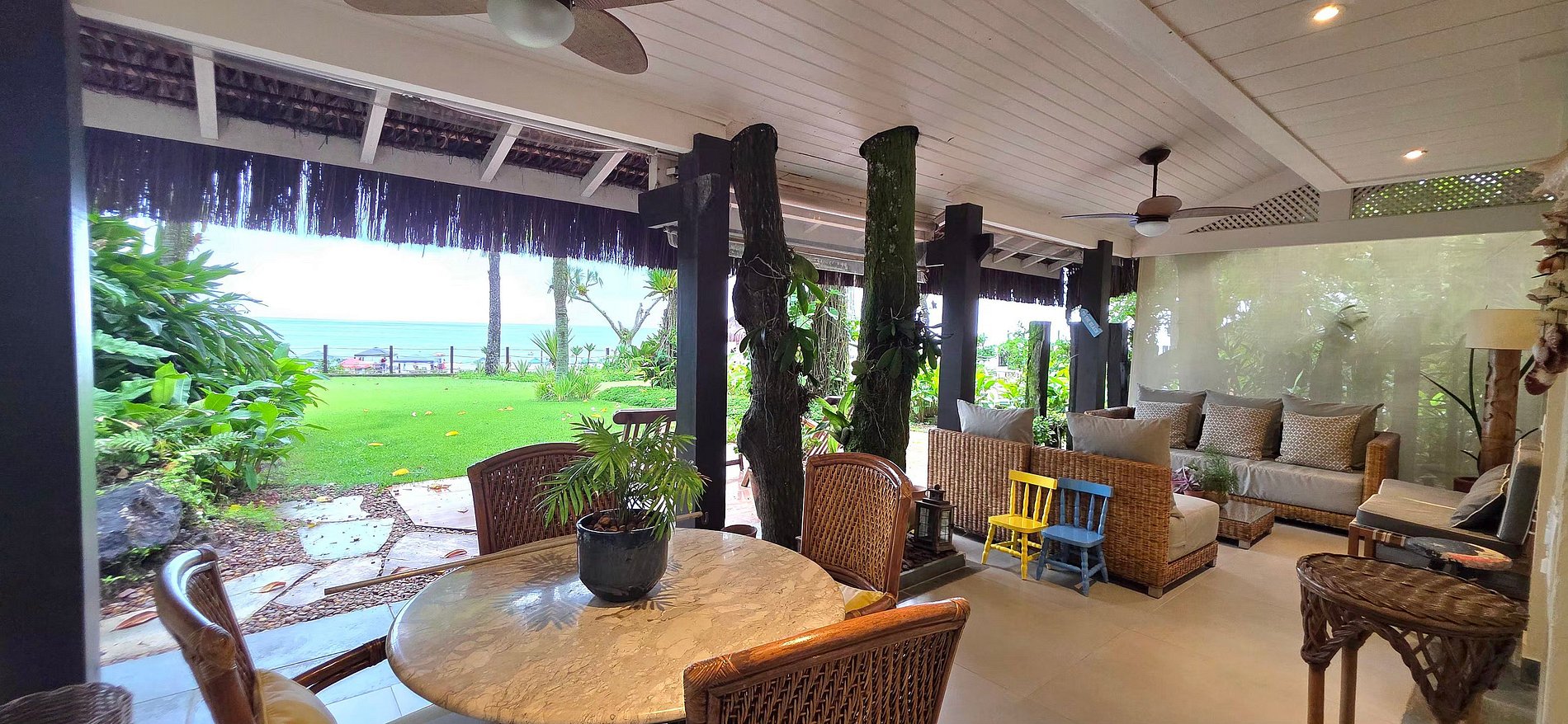 Como destaque especial, a residência dispõe de uma maravilhosa varanda com espaço gourmet integrado, oferecendo uma vista encantadora para o mar e para a piscina do condomínio, que se integra naturalmente à casa, funcionando como uma verdadeira extensão do ambiente de convivência.