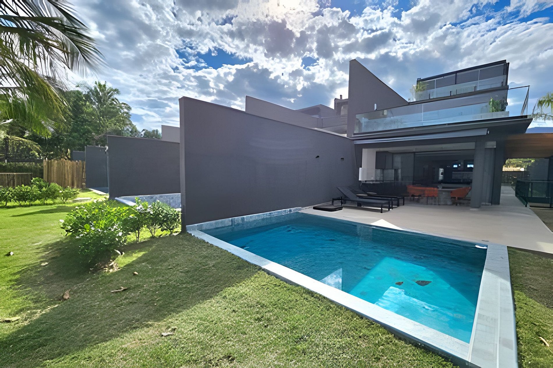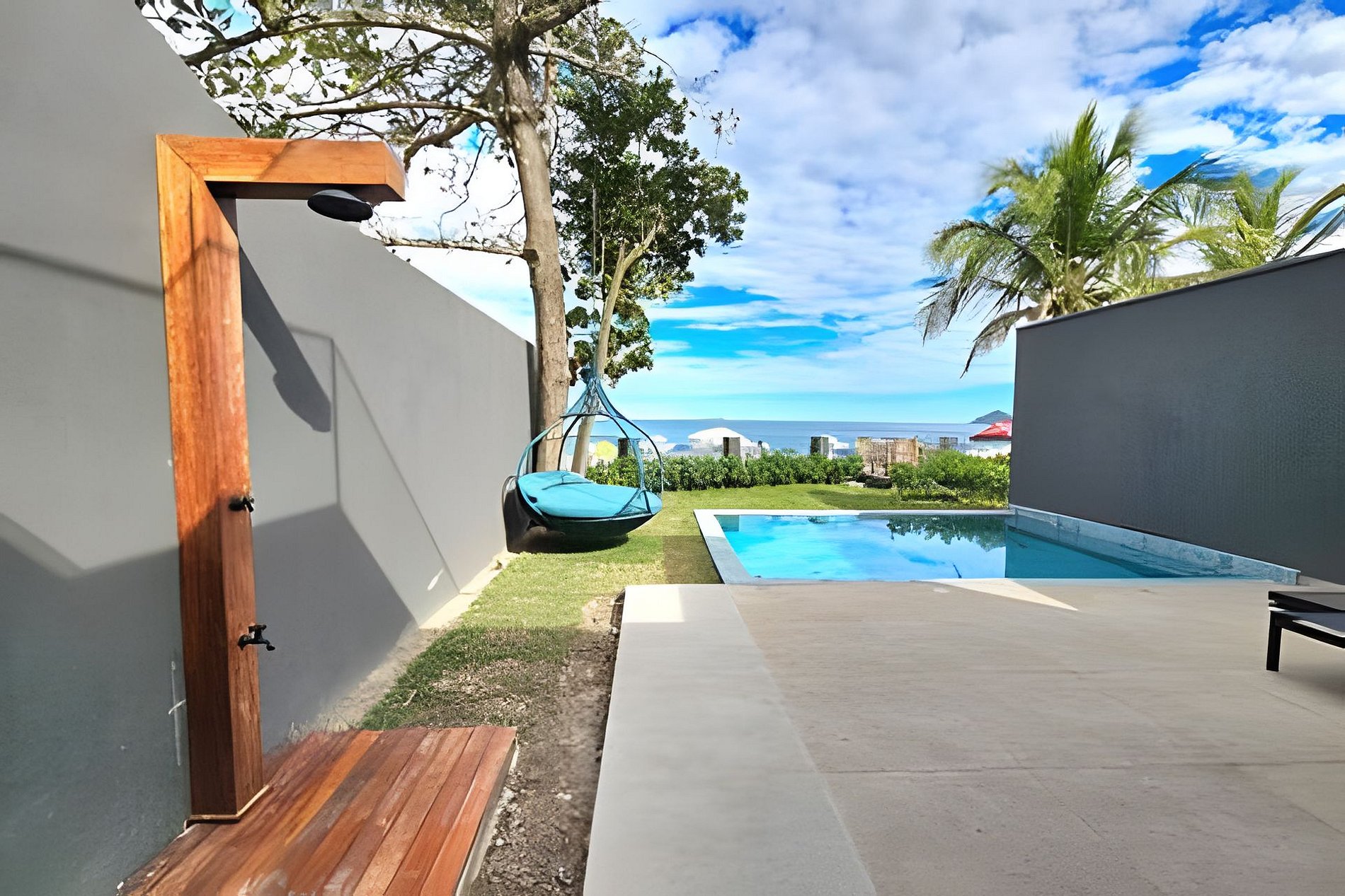 Ao chegar, os hóspedes serão recebidos em uma casa de villagio com piscina particular e vista deslumbrante para a praia.