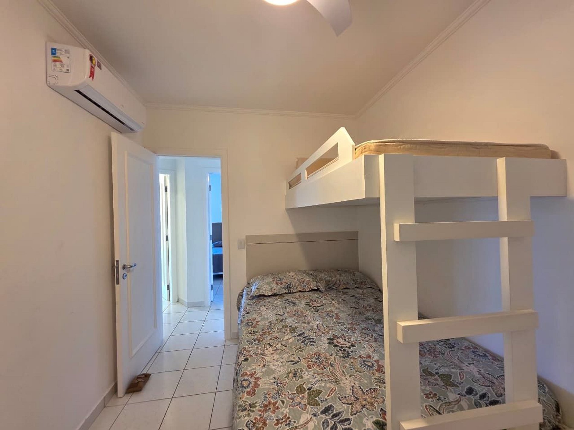 Segunda Suíte: Uma solução inteligente para famílias: 1 cama de casal com 1 cama de solteiro em formato beliche logo acima, armário e ar condicionado.