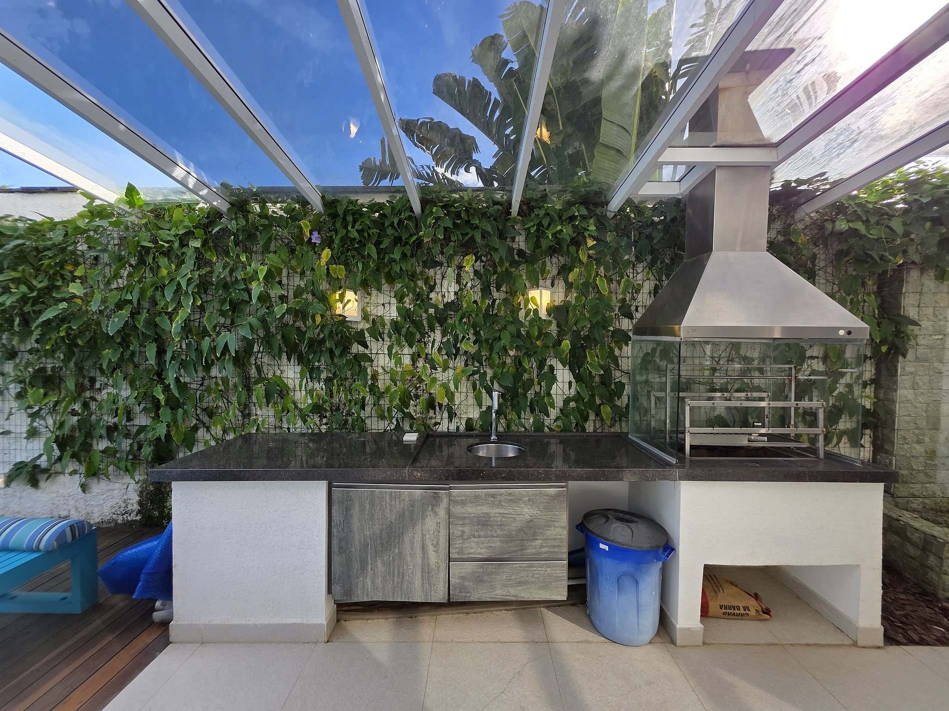 Espaço Gourmet completo com churrasqueira e mesa exclusiva, além de uma cozinha americana totalmente equipada para suas criações culinárias.